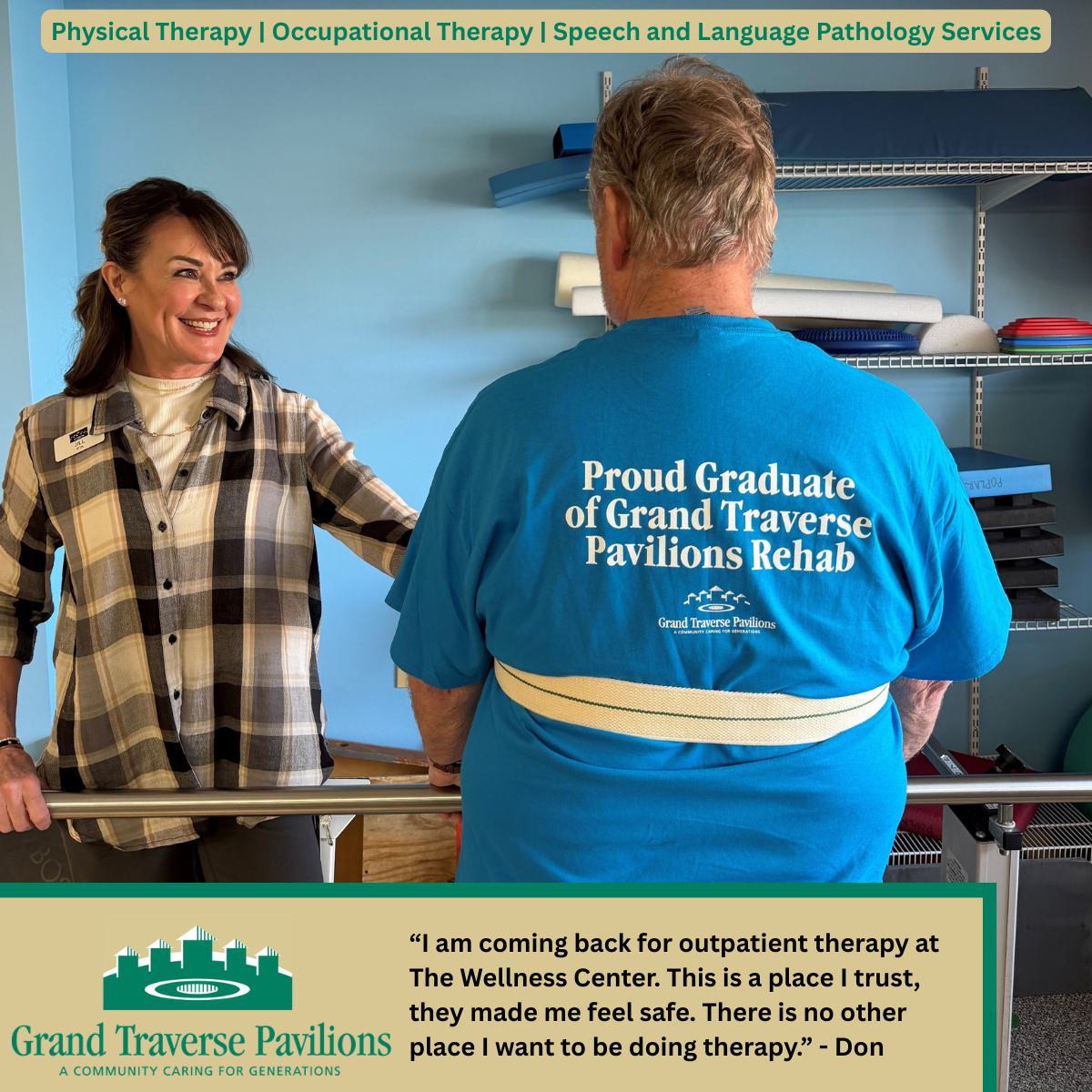 For Don, choosing Grand Traverse Pavilions meant finding more than just rehabilitation. It meant finding a team that supported him through every challenge and helped him become stronger, more confident, and prepared for everyday life.